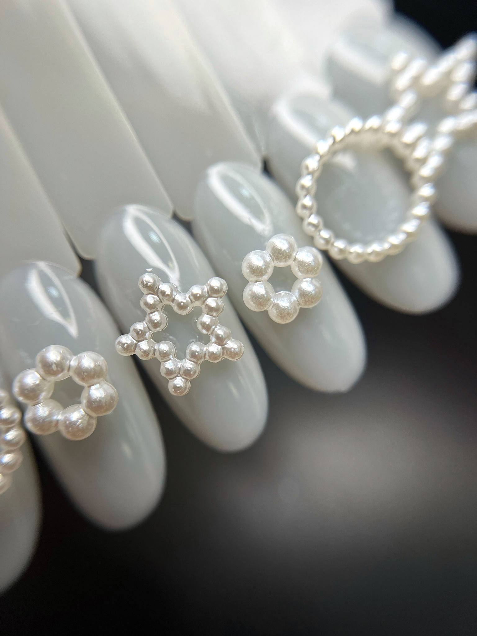 Декоративные, объёмные дизайны в форме разных жемчужных фигурок.